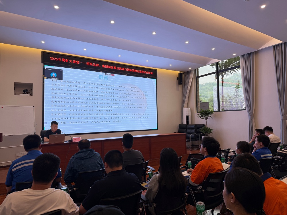 6月24日,公司组织开展“蜀矿大讲堂——招标采购法律、集团制度要点解读与招标采购全流程实务培训”。本次培训由公司生产经营部工程与合同管理岗吕昊建授课。