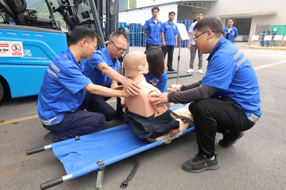 此次演练与公司应急指挥部形成联动,依次进行火灾应急演练与地震疏散演练。火灾演练模拟备品备件仓库突发火情,警报拉响后,员工迅速用湿毛巾捂住口鼻,在引导下有序撤离至安全区域,各应急小组立即展开灭火行动,精准操作消防器材控制火势。地震疏散演练中,员工们在感受到“地震”震动后,遵循“先避险、再撤离”原则,快速抵达安全区域并对“伤员”开展心肺复苏等紧急救治操作,进一步强化了员工的应急救援技能。