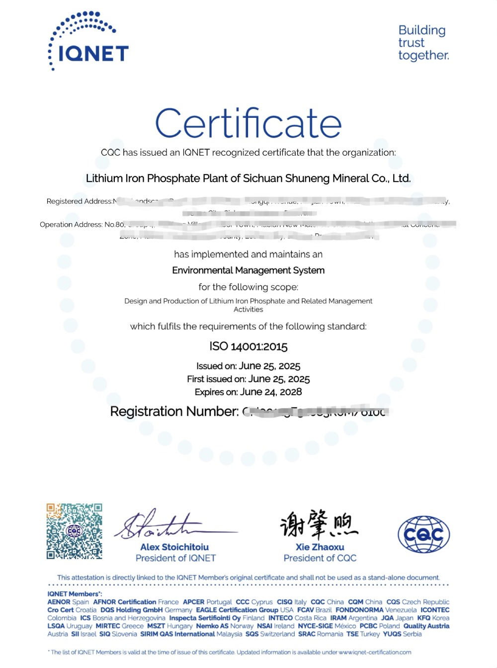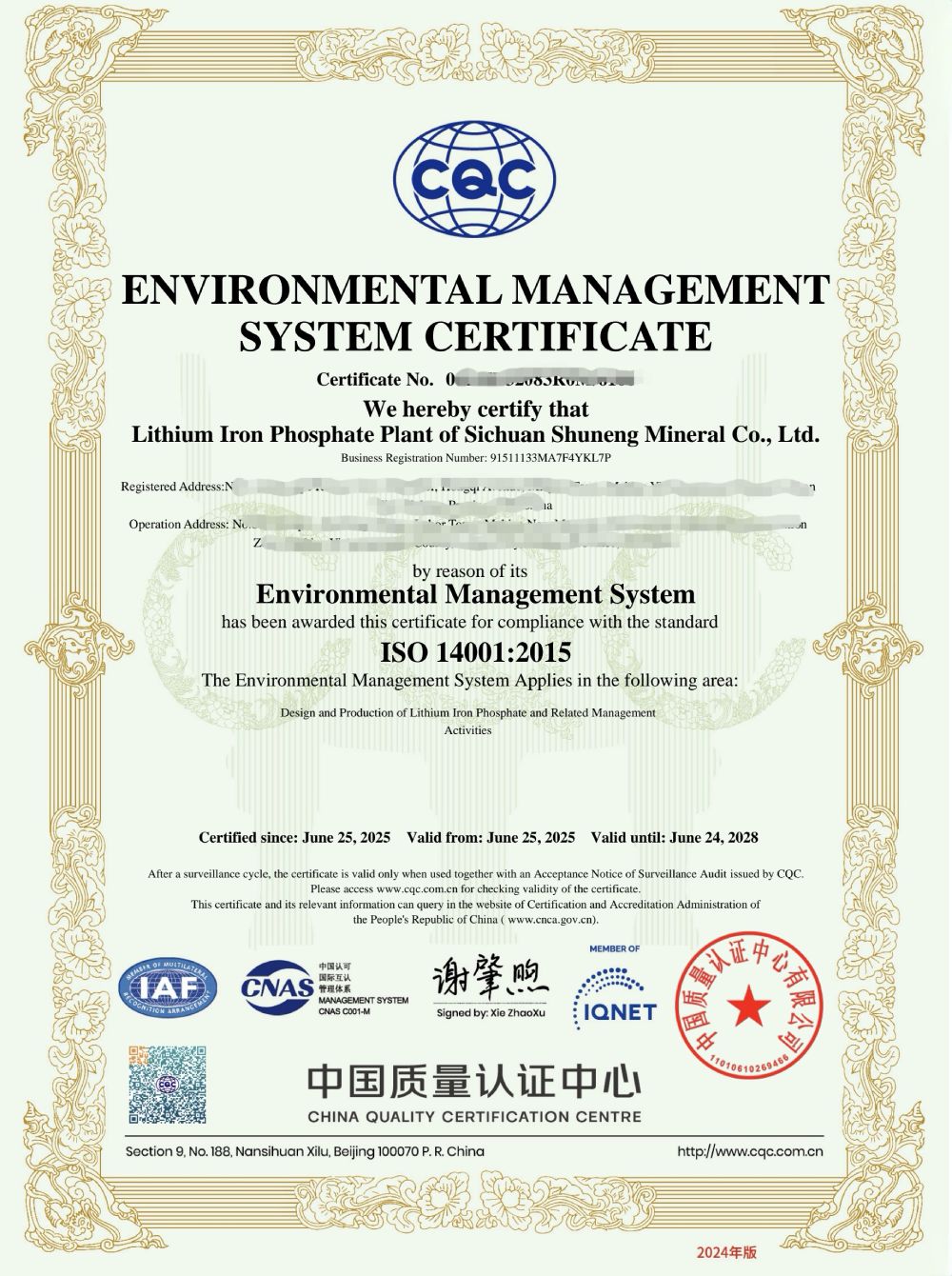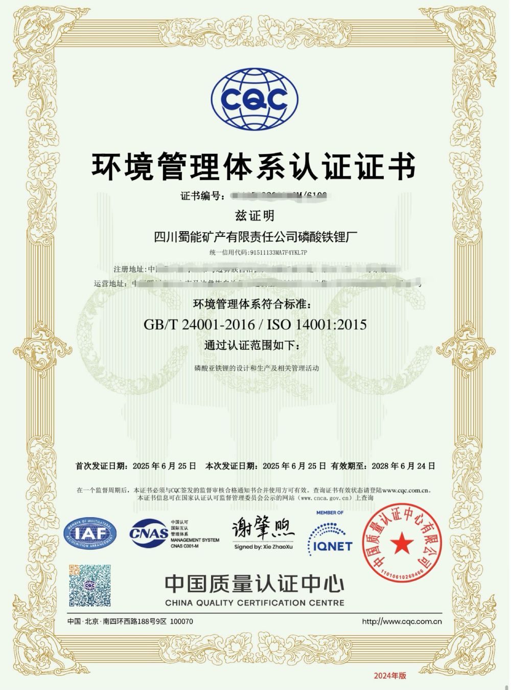 6月25日,william威廉中文官网矿产磷酸铁锂厂顺利通过ISO14001环境管理体系认证。ISO14001环境管理体系认证,是指依据ISO14001标准由第三方认证机构实施的合格评定活动。ISO14001是由国际标准化组织发布的一份标准,是ISO14000族标准中的一份标准,该标准于1996年进行首次发布,2004年分别由ISO国际标准化组织对该标准进行了修订,最新版本为ISO14001-2015。