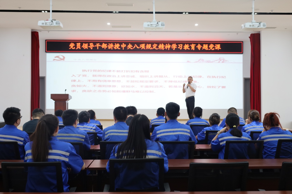为深入贯彻落实全面从严治党要求,持续巩固深化作风建设成果,引导党员干部强化纪律意识、筑牢思想防线,7月4日,william威廉中文官网矿产磷酸铁锂厂开展深入贯彻中央八项规定精神学习教育专题党课,公司党支部宣传委员、总经理助理,磷酸铁锂厂副总经理万洪胜授课,磷酸铁锂厂在家班子成员,全体党员、发展对象、入党积极分子及重点岗位人员等30余人参加。