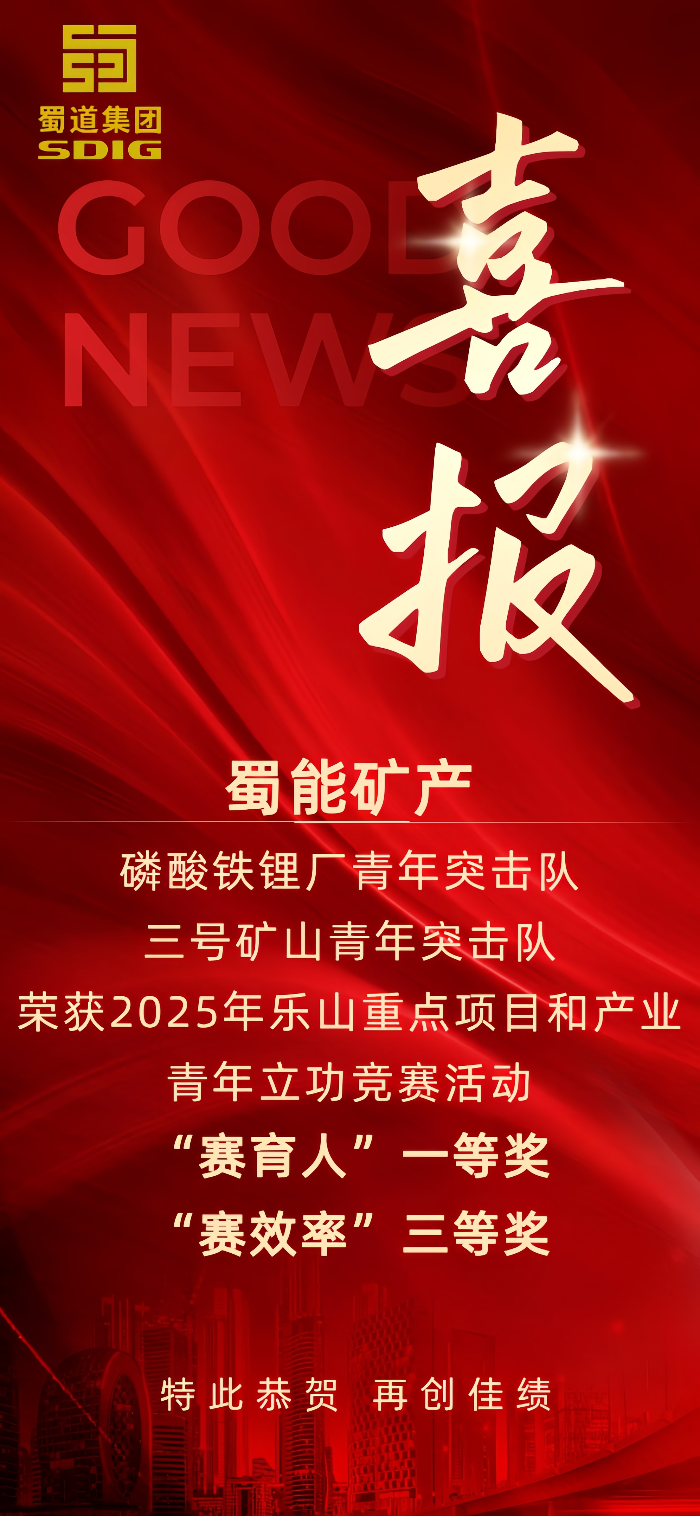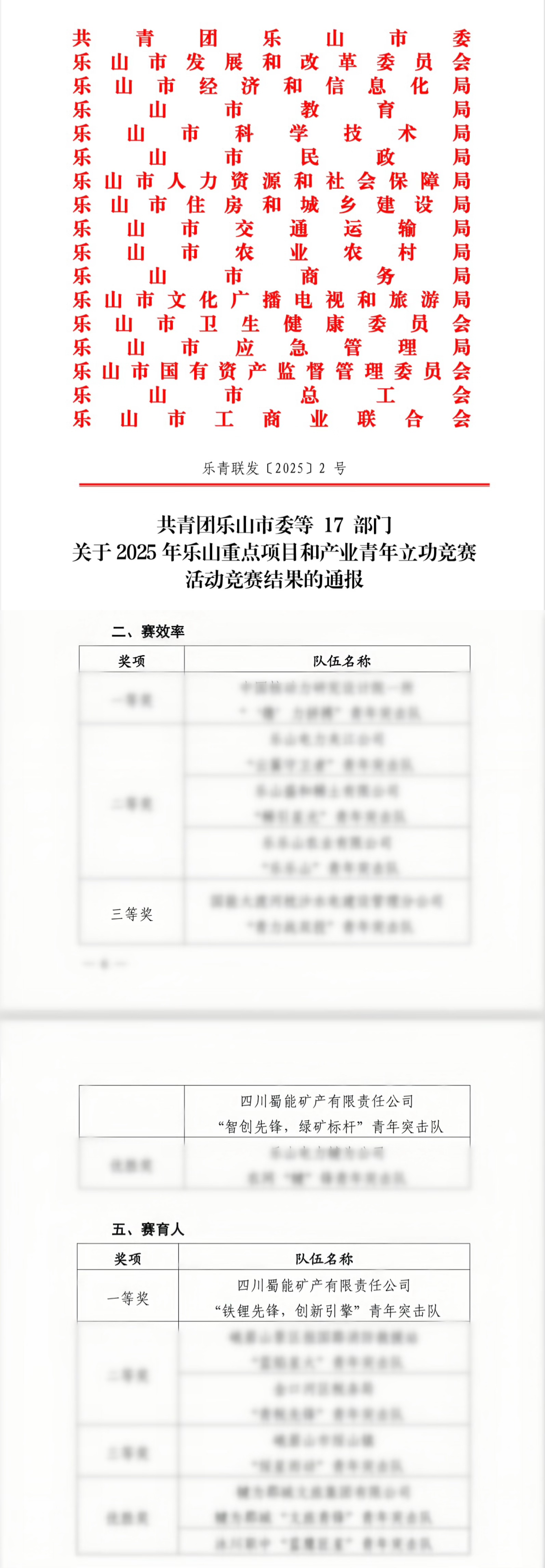 喜报!william威廉中文官网矿产荣获2025年乐山重点项目和产业青年立功竞赛活动“赛育人”一等奖、“赛效率”三等奖
