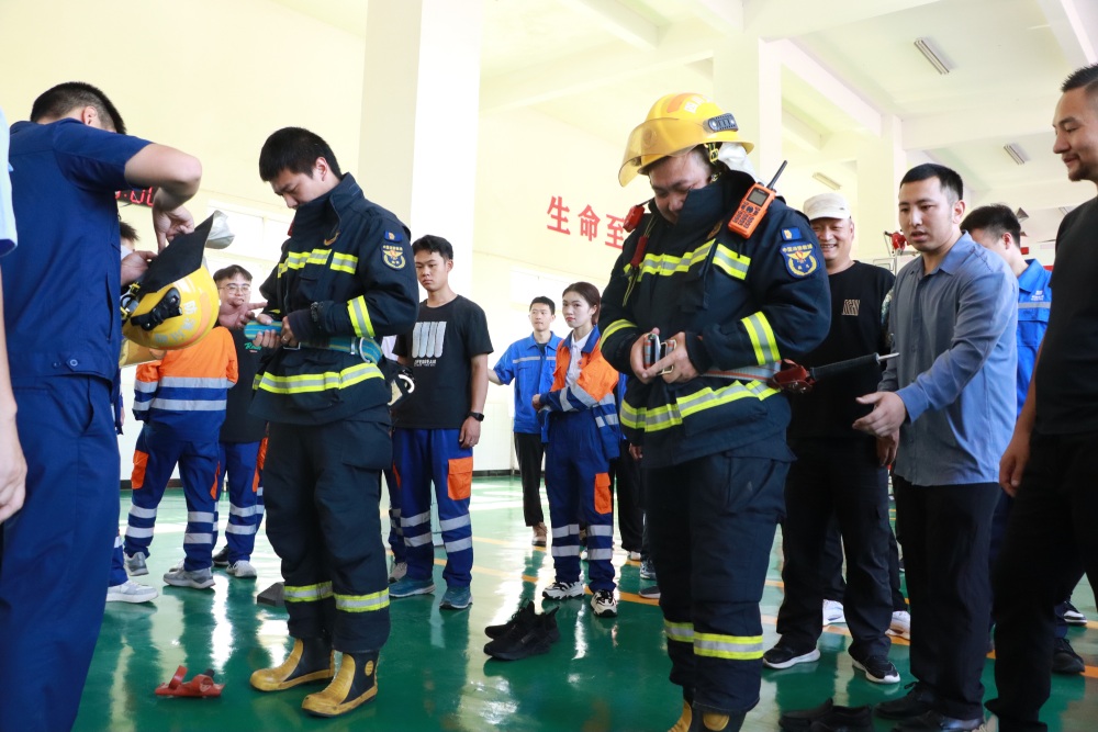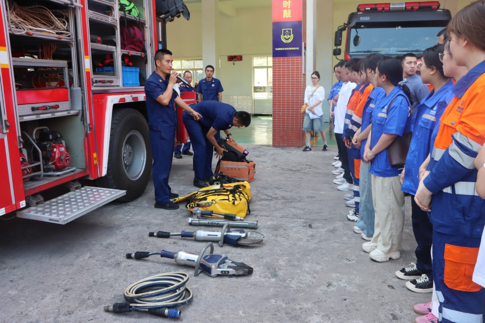 随后,在装备展示环节,指战员详细讲解了各类灭火救援器材和特种防护装备的功能与操作规范,让员工得以近距离接触专业装备。