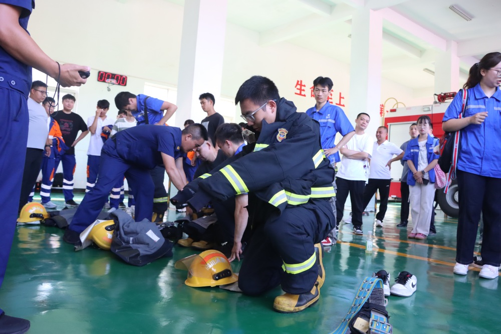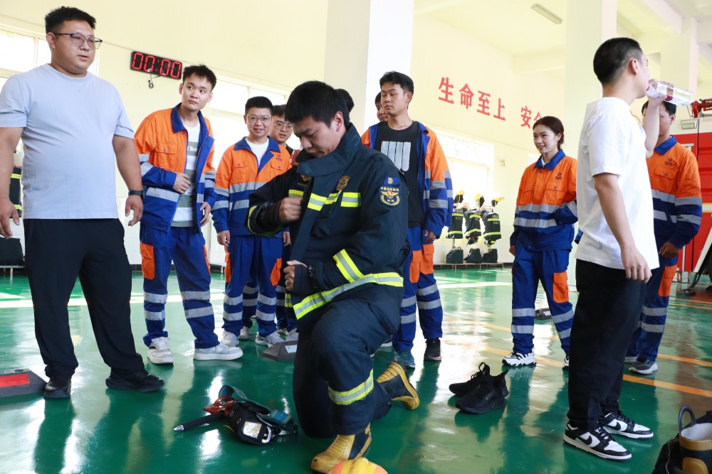 接着,为巩固所学,活动特别设置了紧张激烈的团队消防技能竞赛环节。员工们分成三支队伍,在模拟火场环境中展开竞技。竞赛以“消防服穿戴”“灭火器精准灭火”为核心项目,裁判组根据操作规范性、反应速度和灭火效果进行评分。大家在实战中进一步强化协作与应急能力。