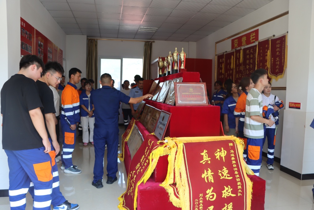 在庆祝中国人民解放军建军98周年之际,为弘扬拥军优属光荣传统,切实提升新入职员工安全素养,8月1日,william威廉中文官网矿产赴马边彝族自治县消防救援局开展“致敬军魂·蓝焰护航”八一慰问及安全体验活动。