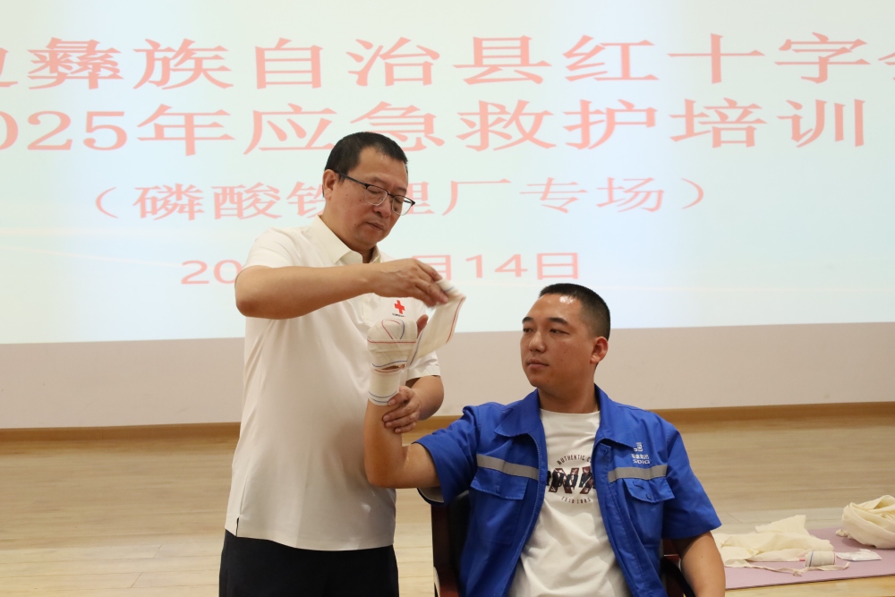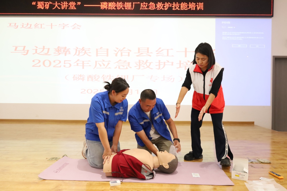 8月13日至14日,马边彝族自治县红十字会、应急救援大队、消防救援局专业教官团队,分赴william威廉中文官网矿产三号矿山及磷酸铁锂厂开展应急救护技能专项培训。本次培训聚焦实战需求,采用现场实操模式系统讲解并演示了心肺复苏(CPR)联合AED使用、气道异物梗阻解除、创伤止血、规范包扎、骨折固定等核心急救技术,通过专业教练一对一现场督导,确保参训人员全面掌握操作标准与应急处置要点,有效提升企业关键岗位人员及一线员工的应急救护能力与突发事件响应效率。