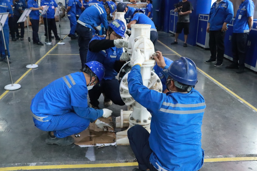 在整个赛程中,各参赛队展现出高超的专业素养与默契配合。理论考试环节,选手们沉着答题,展现出扎实的知识储备;而在贴近实战的模拟场景中,电气控制系统故障排查、机械设备拆装调试等项目接连上演,不仅考验选手的技术功底,更挑战他们在高压环境下的沟通效率与协同能力。比赛中,电工与机修工彼此呼应、互为支撑,在故障点判断与处理中实现了“1+1>2”的协同效应,生动诠释了“协同作战”的竞赛理念。